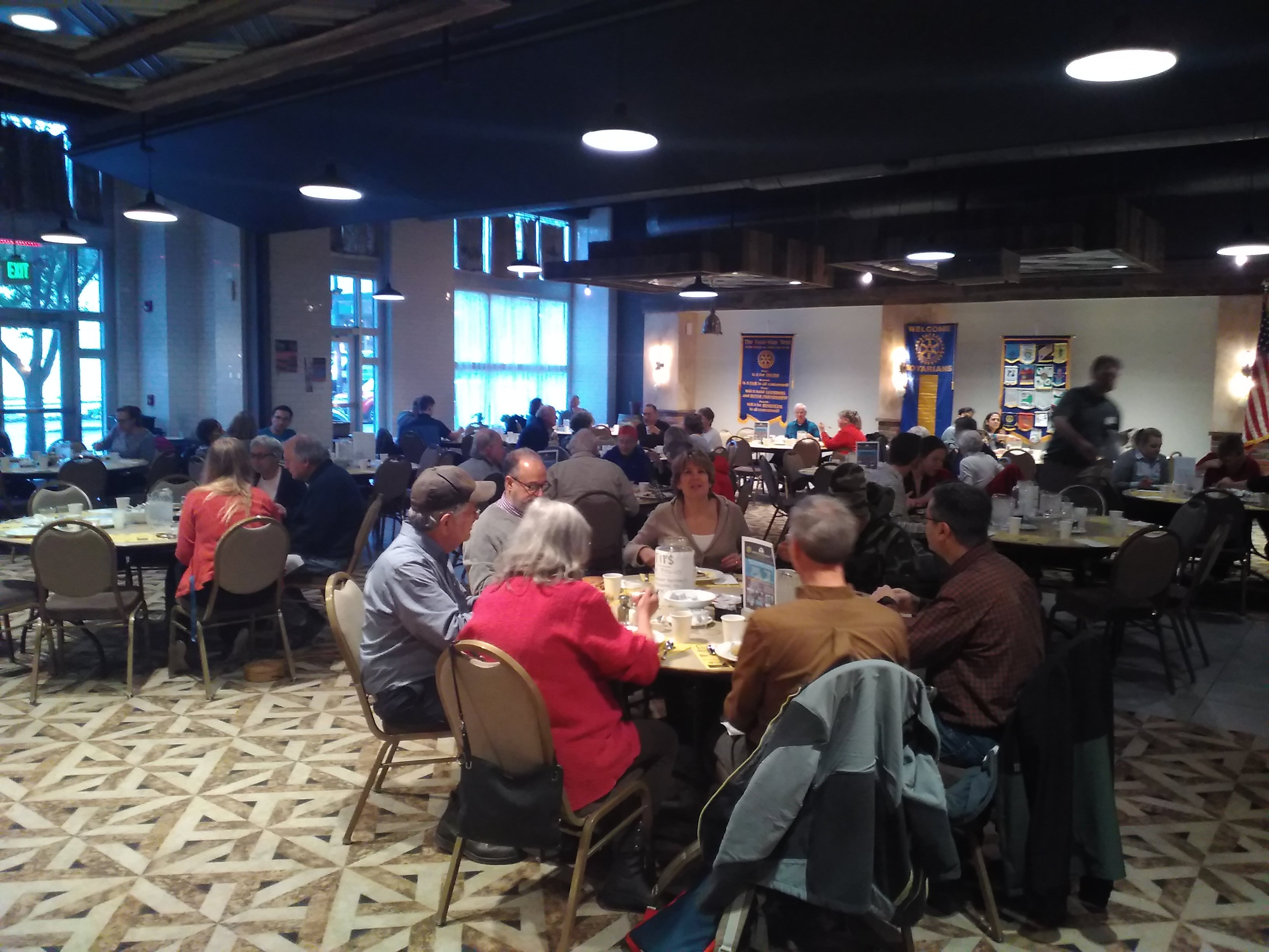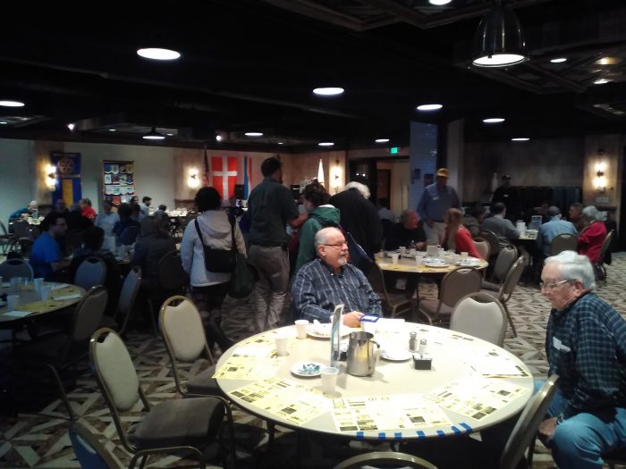 Hundreds turning out to enjoy a daylong breakfast buffet of pancakes and all the trimmings with scrambled eggs, potatoes and corned beef hash.